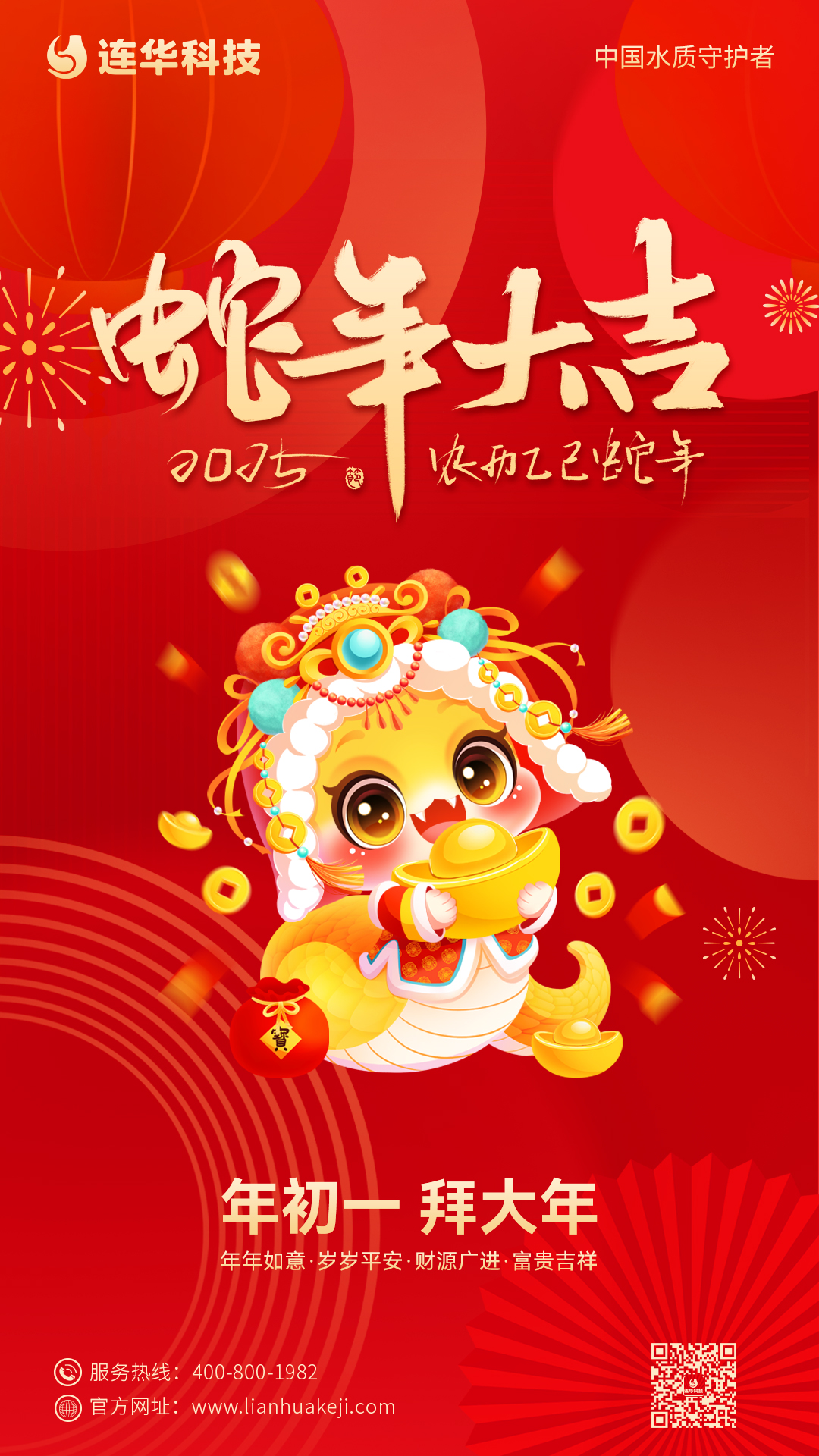 蛇年新春,大地回暖,萬物復(fù)蘇 蛇,那靈動而神秘的身姿 仿佛在新春的舞臺上翩翩起舞 為我們帶來了無限的活力與激情 讓我們跟隨蛇的舞步 開啟這嶄新新的一年 連華科技全體員工祝大家 乙巳蛇年迎春來,靈蛇獻瑞樂開懷 辭舊迎新除煩惱,萬事如意好運來