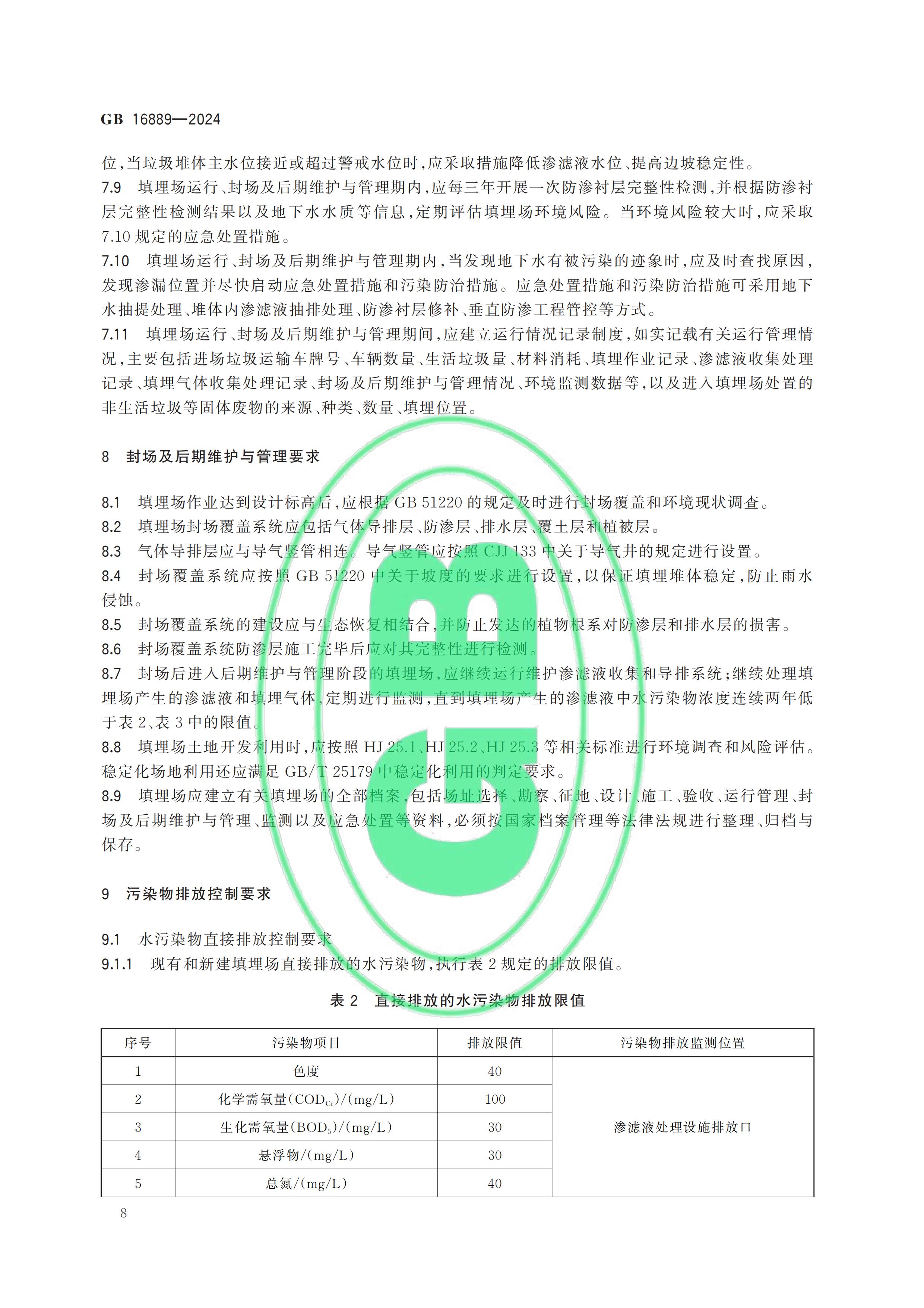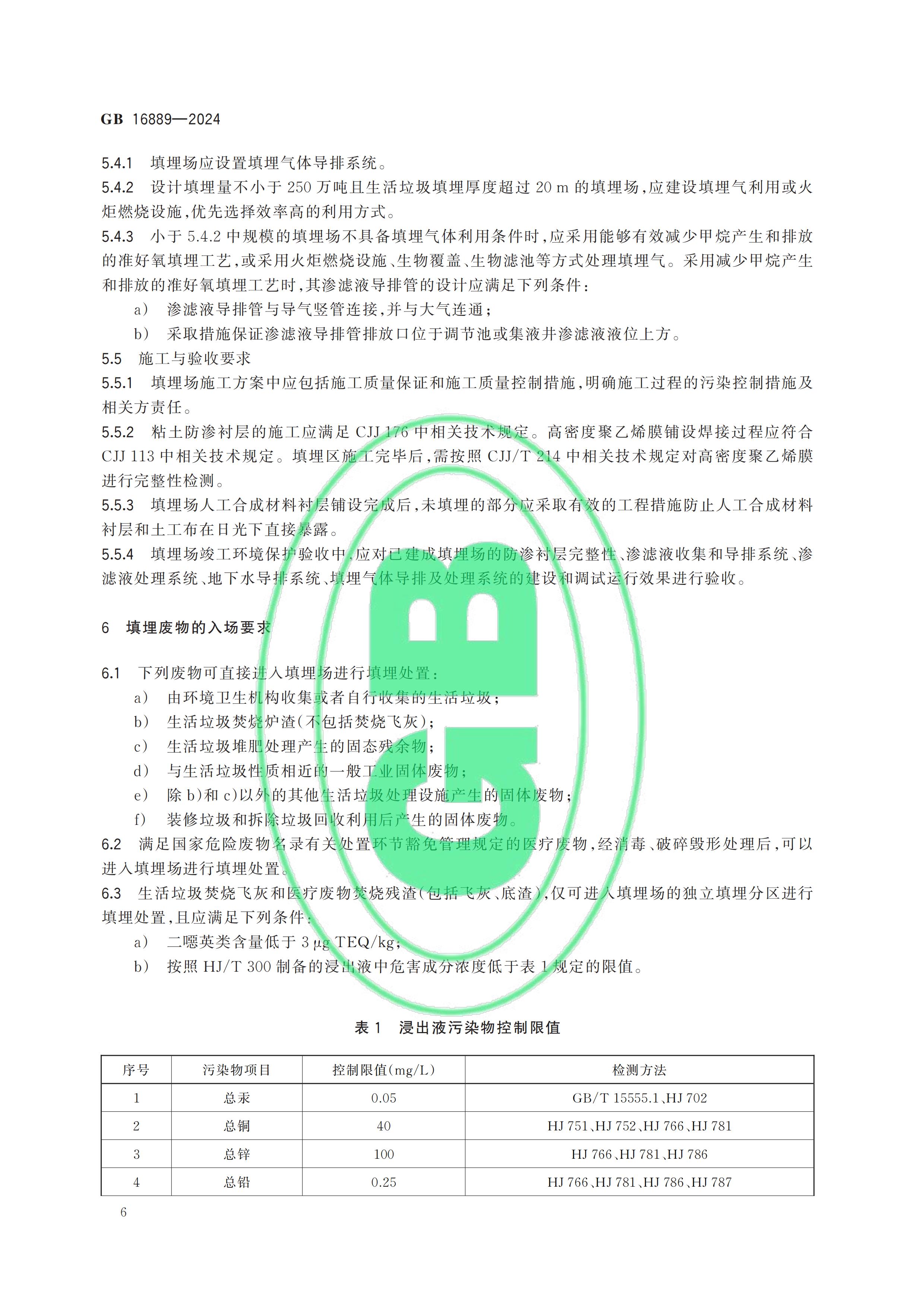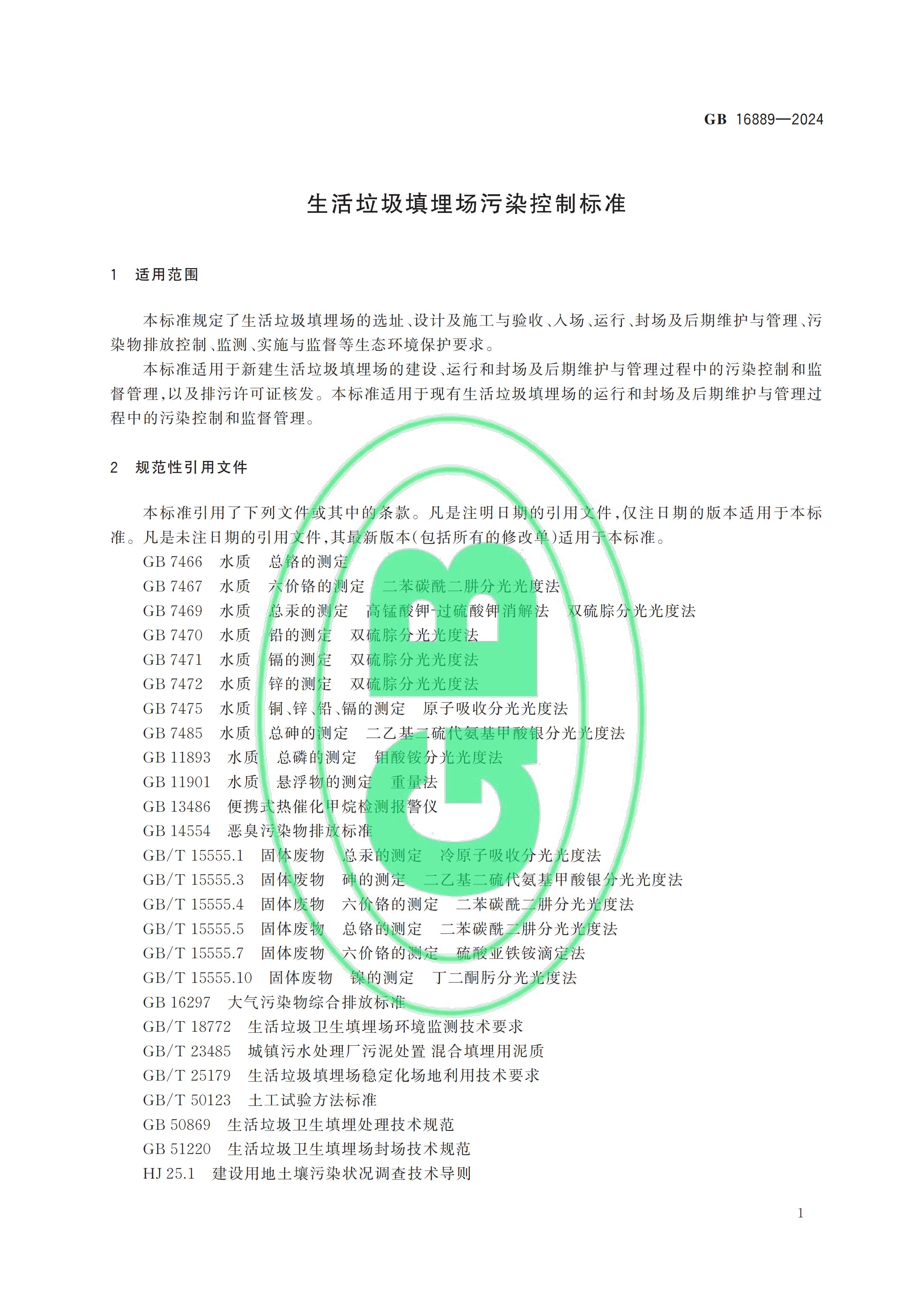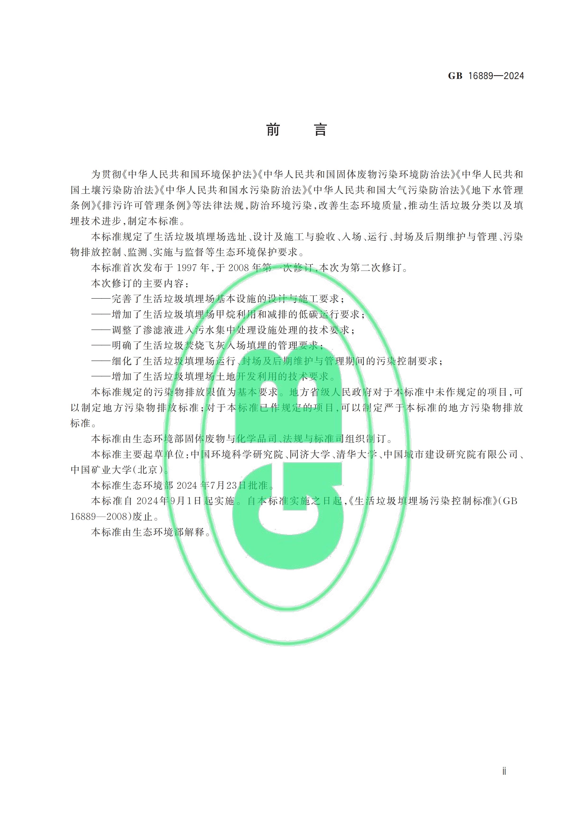 從“全國標準信息公共服務(wù)平臺”獲悉,國家標準《生活垃圾填埋場污染控制標準》(GB 16889-2024)已于2024年7月24日正式發(fā)布,新標準將替代原先的GB 16889-2008,于2024年9月1日起正式實施。以下是GB 16889-2024標準全文: