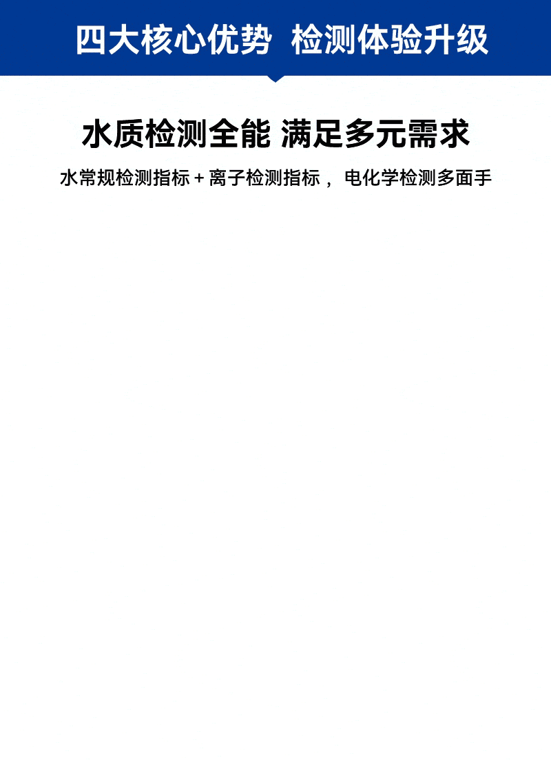 1、手持式迷你主機,支持pH、溶解氧、電導(dǎo)率、鹽度、ORP、TDS、SAL、溫度8項指標(biāo)及氟、氯、溴、碘、鈣、鉀、鈉、硝酸根、銨根等離子快速 檢測,滿足各領(lǐng)域水質(zhì)檢測需求;