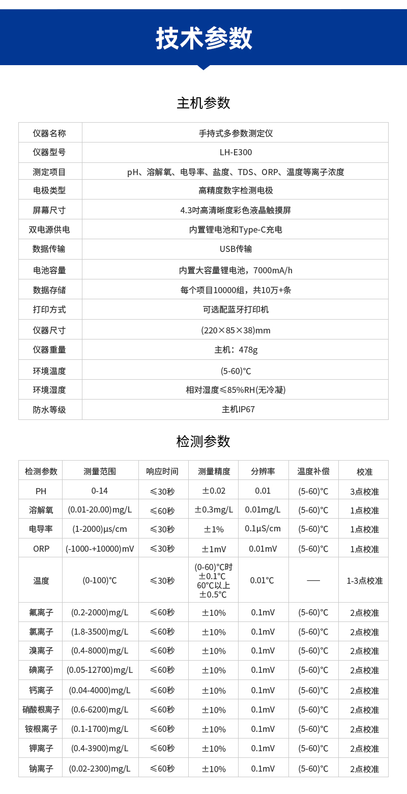 手持式多參數(shù)測定儀LH-E300技術(shù)參數(shù)