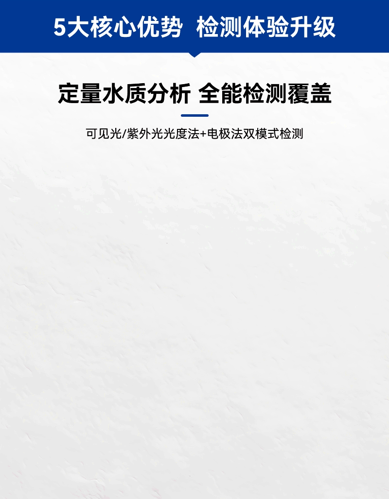 4、190nm-1100nm全波段檢測,支持光度測量、多參數測定儀、紫外總氮及電化學功能,支持1-3cm比色皿及φ16mm管比色,滿足多樣化水質檢測需求;